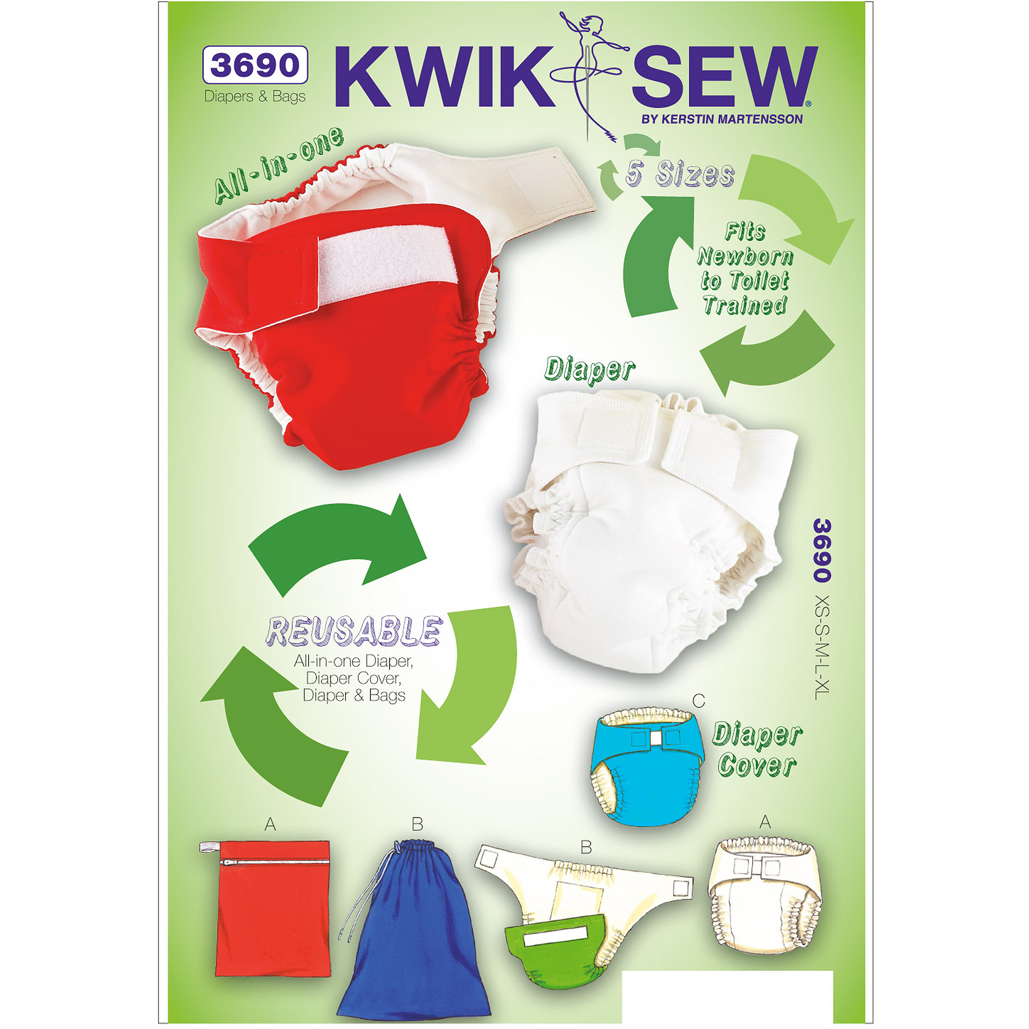 Kwik Sew Pattern Diapers Diaper Cover Insert And Bags Xs S M L Xl Bag Sizes S M L Walmart Com